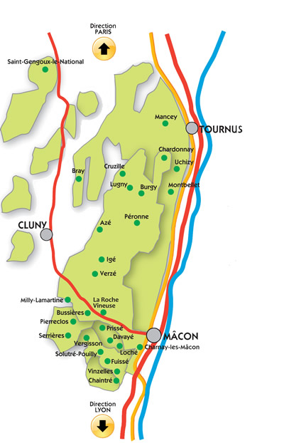 This symbolic, world-famous appellation, has it roots in France’s Saône & Loire region, between Tournus in the north and Mâcon in the south. There is no such thing as “a type of Mâcon wine”, there are many... Those who have had the pleasure of visiting this wine area will have appreciated the incredible diversity of the landscape and the remarkable variation of hilly terrain, with straight rows of vines on gently rolling slopes interrupted by some very steep hillsides, facing the Saône Valley.